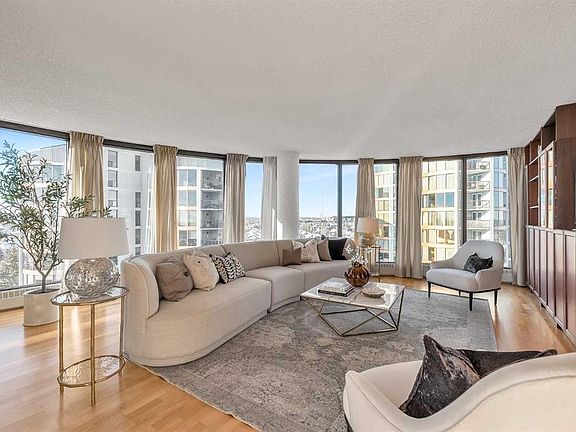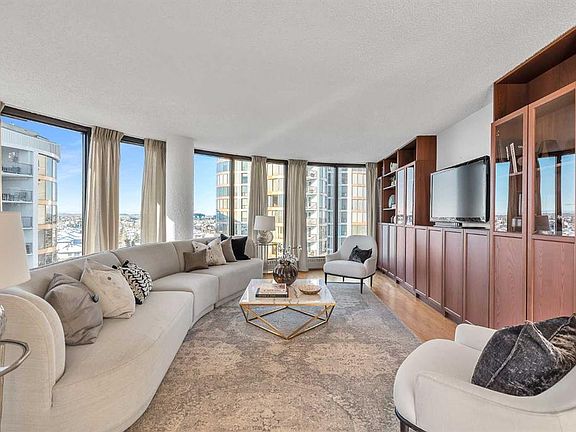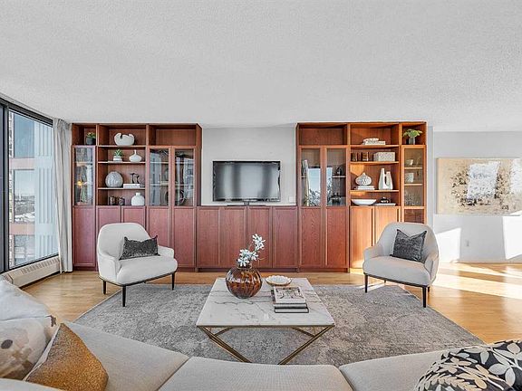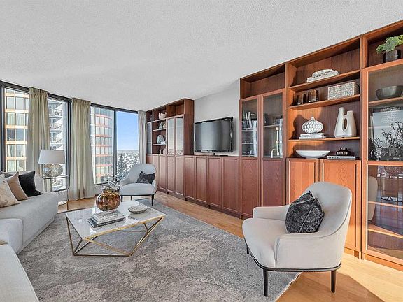 SPACIOUS 9TH FLOOR CONDO WITH 180° DEGREE VIEWS OF DOWNTOWN, CITY, AND MOUNTAINS– 1352 SQFT | 2 BEDROOMS | 2 BATHROOMS | 2 PARKING STALLS | Welcome to executive living at the iconic Odyssey Towers. This unique concrete building is designed with large floorplans that provide privacy, style and function. With wall to wall windows and open plan living space, this home is filled with natural light and provides views from every room. On the interior you will find a spacious french country inspired kitchen equipped with stainless steel appliances, granite countertops, a large corner pantry, and breakfast bar. Enjoy sitting at your dining table and watching the sun rise up behind the downtown skyline- the dining room leads out to the covered balcony where you can relax on a summmer evening and watch the sun set behind the Rocky Mountains. The adjacent nook area provides a great area for a buffet or a desk. Leading to the show- stopping living room with panoramic city and mountain views. . You’ll find both bedrooms to the front of the property and away from the living space, for comfort and privacy. The primary bedroom features a walk-in closet and and large ensuite bathroom with double vanity, and oversized shower. The second bedroom and full bathroom are perfect for guests. Additional conveniences include in-suite laundry with cabinetry and counter space, a large in-unit storage room, a linen closet, and an entry closet. Parking is convenient with two large stalls – one indoor and one outdoor (perfect for a small RV, trailer, or even a boat- permitted with board approval), and you have the benefit of an extra out of unit storage space. This adult-only (18+) no-pet building is quiet, secure, well-managed, and offers valued amenities including saunas, steam rooms, guest suites, and visitor parking. The location is unbeatable – walk to West District’s restaurants, shops, and services, explore the many walking paths in this established west-side community, or take advantage of the quick connections to downtown, Stoney Trail, and the mountains. Book your showing today to see why this is one of the most desirable west-side addresses for condo living.