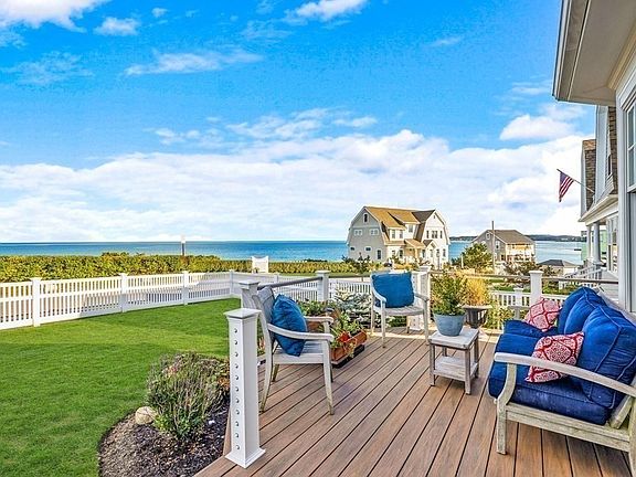 Impeccable 2019 custom build w/sweeping ocean views. Perched high on Scituate’s coveted Third Cliff, this estate combines 3 parcels to create an unmatched WATERFRONT masterpiece. A breathtaking main floor w/10-ft ceilings boasts a wall of windows that immediately draws you to the sea. Crafted for entertaining w/bar, pantry & Chef’s kitchen. Shiplaped walls & built-ins line the stairs to the 2nd level where you will find 3 bedrms each w/bath. The family room w/16-ft ceilings, stone fireplace & bar area offers peaks to the sand spit beach. The 3rd floor primary bedroom oasis exudes visions of being lulled to sleep w/the sounds of crashing waves & a luxurious spa bath. Expansive roof deck where you will be enveloped by the sights & sounds of the Atlantic. Finished LL & heated garage/workshop. A fenced yard w/hardscape, outdoor shower, & kitchen/bar space. The deeded cliff front parcel ensures that the unrivaled views are preserved. Shown by appt. only.