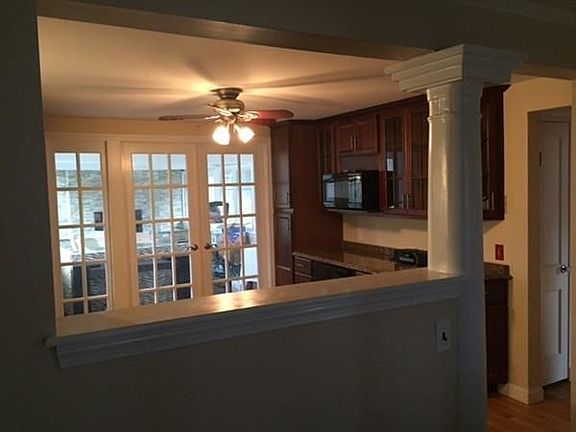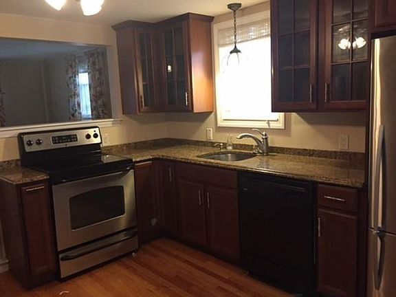 Quiet dead end street with this Cape style home. First floor offers fully applianced updated kitchen, formal dining room with built in hutch, formal living room, bedroom, full bath and a large great room with radiant heat and a pellet stove. Second floor offers two bedrooms. Lower level offers a finished playroom and a 3/4 bath. Oil heat with 3 zones. Off street parking for 2 to 3 cars. Nice terraced yard with a large deck for the summer. Snow removal by the tenant. No smoking. Dogs under 35 lbs will be considered. No cats. First months. last months, half month security deposit and one month real estate fee is required. Good credit and references required.