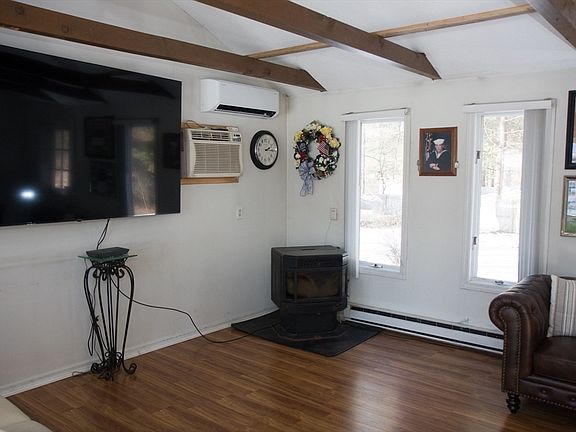 Nestled in a highly desirable neighborhood, this home offers 3 generously sized bedrooms, a light-filled living room with vaulted ceilings and a cozy pellet stove, a formal dining room with a charming bay window and an inviting fireplace, a kitchen featuring beautiful white cabinets and granite countertops, and a full bathroom crafted for modern living and timeless appeal. This property boasts numerous recent updates, including a newer roof installed 8/2021, new siding, newer replacement windows, and energy-efficient mini-split units. Step outside to the low-maintenance Trex deck, perfect for relaxing or entertaining. Indulge in the newer hot tub for ultimate relaxation, and enjoy the eco-friendly benefits of owned solar panels, offering sustainability and energy savings. To make your move effortless, appliances are included for the buyer’s enjoyment. Don’t miss this opportunity to call this beautifully updated home your own! Book your showings today.