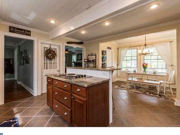 Charming home with style, It feels like home the moment you walk in the door. Relax on the front porch swing. Grill on the back deck. Enjoy large kitchen with cherry cabinets, granite counter tops, breakfast room, 2 tier island, tile floor, wall oven and build in microwave, bead board wood ceiling and pantry closet. Open floor plan in the kitchen allows for great entertaining space. Living room with brick fireplace and wood burning stove, perfect for cold winter nights. Formal dining room just ready for special gatherings. Powder room, Mud/Laundry room with sink and rustic barn style door. Finished original hardwood floors and crown molding through out home. Master bedroom with walk in closet and French door to second floor deck. Sizable hall bath with linen closet. Two additional bedrooms on second floor. Third floor 2 additional bedrooms.(Currently being used as storage and office) Walk out basement. Large deck and fenced back yard. New walkway, Ceiling Fans, New Roof. Replaced windows. Heating/Central Air 2010, 200 AMP electrical service. Walk to the fishing. Walk to Park. It feels like home the moment you walk in the door.