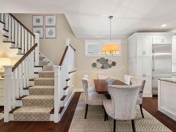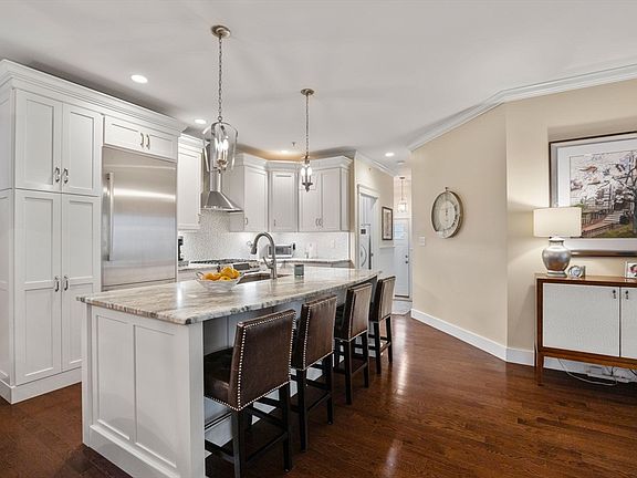 Enjoy the simplicity of condo living in this sophisticated yet comfortable detached Town Home in the Village at Cooks Farm. Open-concept floor plan and white finishes enhance the abundance of natural light throughout. Harwood floors and crown molding add charm. The kitchen has a gorgeous 8 ft island, beautiful white soft-close cabinets and Bosch appliances including a stainless hood. Entertain year round in the spacious living room with gas fireplace or outdoors in your private patio area. The primary bedroom offers a custom walk-in closet, elegant en-suite bath and is conveniently located on the main level. Perfection continues on the 2nd floor with a stunning family room w/ vaulted ceiling and a large 2nd bedroom w/ walk-in closet and bath. The home's 3rd bedroom is currently being used as an office with outdoor access to a covered deck. Need more space? Spread out in the handsome lower-level bonus room and utilize the expansive storage space. Located adjacent to Franklin CC.