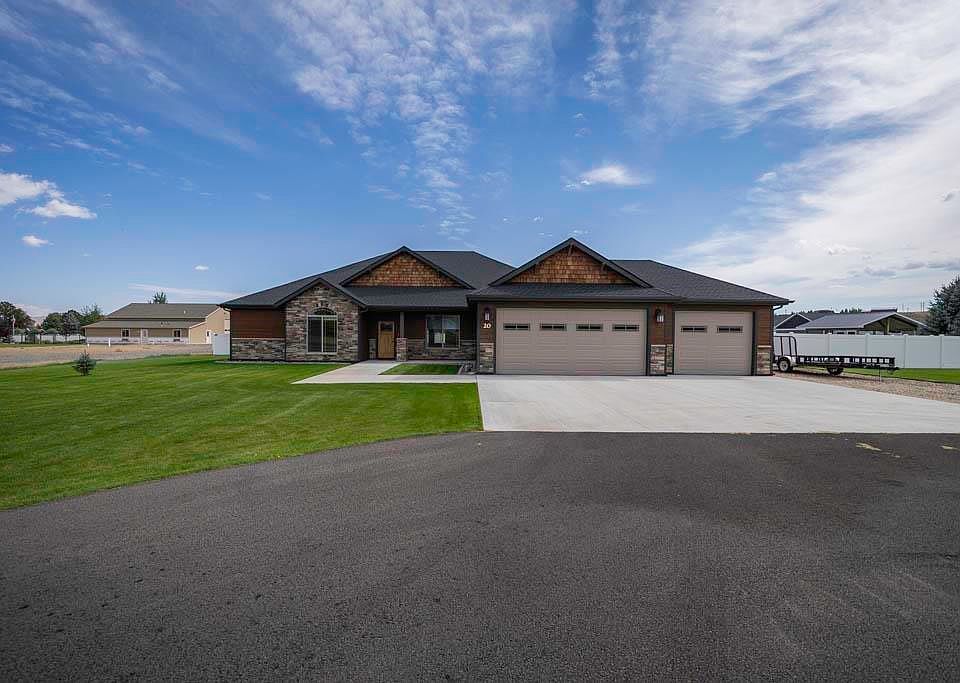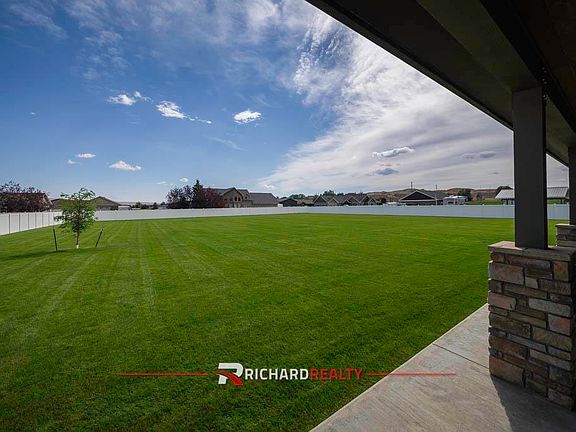 Stunning Custom Ranch-Style Home on 1.05 AC! Built in 2020, this 2,251 SF single-level home features an open floor plan with vaulted ceilings, stone fireplace, lovely kitchen with granite and stainless appliances, 3 bedrooms, office/4th bedroom, including a charming master suite. Enjoy radiant in-floor heat, central air, and an expansive fenced backyard with covered patio. 3-car finished garage, place to park an RV, and ROOM TO BUILD A SHOP! NWRW for domestic use plus a private well for UG sprinklers. Move-in ready with an excellent edge-of-town location. Hurry on this one!
