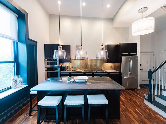 In the heart of Cambridgeport, this corner residence blends modern conveniences with quiet sophistication. Soaring 14-foot windows frame treetop park views, filling the one-bedroom plus office with natural light. Custom walnut floors and an open layout create warmth and ease, while the kitchen's expansive island is ideal for both cooking and entertaining. A dedicated office provides flexibility for work or study, while the bedroom is designed as a private retreat with ensuite bath. The private 500 square foot. roof deck extends the living space outdoors with sweeping views from Boston's skyline to Harvard. Amenities include a deeded garage parking space, central AC, daytime concierge, fitness center, landscaped courtyard, bike storage, community lounge, and secured storage. Across from Dana Park and steps from Central Square and the Red Line, this residence offers both tranquility and connectivity in one of Cambridge's most sought-after neighborhoods.