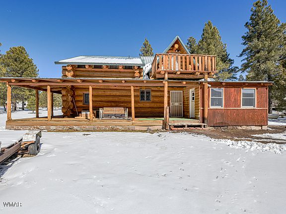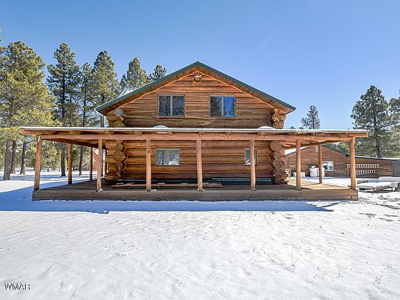 Look no further for your cabin in the woods. Located on 2.51 usable acres, bring your horses and your toys. This gorgeous home has been handcrafted out of Engelmann Spruce and is a true custom log home. Hardwood flooring throughout to give you the warm feel only wood can. The Hickory kitchen cabinets and new kitchen appliances make the kitchen the perfect place for the family to gather. The home has 4 bedrooms with plenty of room to spread out. The full-block foundation and finished basement has another living area and a vault to put all your valuables in. The Arizona room provides plenty of sunshine and light to relax in. The home has a wrap round porch, so you can follow the sunshine all day. The 3 gar garage is ready for all your projects and has an additional workshop to boast The garage has it's own heat source and is hooked up to a septic tank it shares with the RV hookup. Thant's right, the home has 2 septic tanks. The home also comes with a Generac generator that is attached to 2 propane tanks so you will never lose power. Don't miss out on this beautiful, well-kept log home.