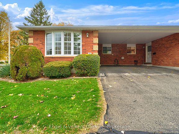 Charming 2+1 Bedroom, End Unit Bungalow Townhouse in Brantford! Perfectly situated near shopping plazas, public transit, and the new Costco, this home offers convenience at every turn. This inviting unit offers a thoughtful open floor plan, providing ample space for both living and entertaining. The additional third bedroom offers versatility, ideal as a guest room, home office, or hobby space. Enjoy the comfort of main floor living with minimal upkeep. 2 full bathrooms, California shutters and additional storage space in the utility room. Enjoy the quiet and private back deck with awning and mature trees, a great space for barbecuing and entertaining. This small enclave of bungalow townhouses offers the convenience of condo living without the hassle of a high rise building. Carport parking in your private driveway plus visitor parking close by for guests. Less than a 5 minute drive to HWY 403, this is a great location for commuting. Whether you're downsizing or just starting out, this home offers excellent value for a property in this sought-after location.