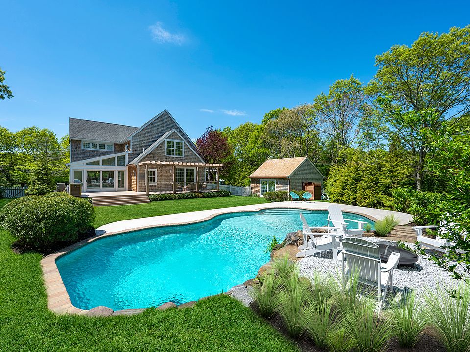 FURNISHINGS INCLUDED EXCEPT ARTWORK. Conceived by award-winning architect Joseph Eisner, AIA, LEED AP, and newly completed to perfection, this modern masterpiece is the latest creation of a preeminent home design aficionado, featured in prominent publications and sought-after by the most discerning. Nestled in a quiet, coveted cul-de-sac, 20 Cove Neck Lane boasts an incomparable location, resting moments from beautiful Fish Cove, minutes to Southampton Village, North Sea Harbor, Peconic Bay and pristine ocean beaches, as well as the Southampton Youth Services Fitness Center and Tennis Club. Set on a lush .84 acres of elevated grounds, the exquisite 4 bedroom 4.5 bathroom gem abuts 10 acres of reserve land for the ultimate peace and privacy. An expansive 4375 square feet of luxurious living space is met by serene and stunning outdoor environs that afford a perfect backdrop for entertaining. Lounge and dine alfresco on the generous wood deck with a built-in grill and fridge, or enjoy summer swims in the sparkling in-ground pool.Refined interiors are light, bright and spacious, offering gorgeous views of greenery and an open-concept layout for the host. The wonderful great room with wide-plank wood floors and a sleek wood-burning fireplace is complemented by a lovely dining alcove enveloped by windows. The brand new state-of-the-art kitchen is tailored to the chef, styled in white with abundant cabinetry, stone countertops, and a large island with extra seating. A sky-lit sunroom with a ceiling fan and tile flooring extends the kitchen/party area, offering huge sliding glass doors leading to the pool and outdoor oasis. Among the additional highlights are primary suites on 2 levels (one accessing the deck and pool), 3 additional guest rooms, all new high-end spa baths, a newly-added finished lower level, full laundry room with storage, refreshing outdoor shower, and oversized detached 2-car garage. Every detail of this exceptional upscale home has been thoughtfully considered for optimal aesthetics, functionality, and sustainability. Topping the allure is the premier address, in close proximity to all the attractions of Southampton, Bridgehampton, Sag Harbor and Water Mill, and an easy commute to Manhattan!