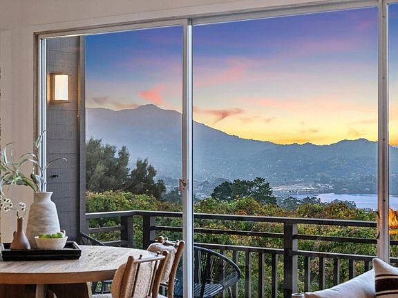 Mid-Century Modern Sanctuary with Wabi-Sabi Soul, Plus Sweeping Bay and Mt. Tam Views! Experience serenity and sophistication in this timeless mid-century home perched above Sausalito's tranquil hillsides with sweeping views of the Richardson Bay/Marina/Pt. Strawberry/Tiburon and Mt. Tamalpais. The property blends organic materials and a soothing Wabi-Sabi vibe; celebrating simplicity, texture, and natural beauty, set on a private ~.22-acre lot. Mostly one-level living features a remodeled open kitchen flowing into a sunken living room with gas fireplace, view deck, and sliding glass doors framing stunning vistas. The primary suite includes a private sauna; the second bedroom offers an attached office ideal for remote work or creative pursuits. Japanese-inspired gardens and a secluded patio invite outdoor entertaining or quiet relaxation. A lower-level den (or optional third bedroom) connects to an attached two-car garage, completing this thoughtfully designed retreat. Just 3 minutes to the Golden Gate Bridge for a dream commute. Enjoy easy access to Caledonia Street's local favorites: Driver's Market, Sushi Ran, Equator Coffee, Salt Boutique, Dunphy Park, and live music at the legendary Sausalito Cruising Club... offering the best of Marin coastal lifestyle~