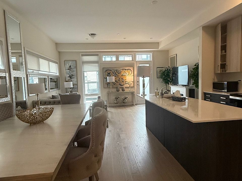Executive urban townhome (2,618 sq. ft.) in Richmond Hills highly sought-after Jefferson community at Bayview & 19th Avenue, featuring multiple terraces including a private rooftop, a chef-inspired open-concept kitchen with quartz island, extended cabinetry, large pantry, and premium stainless steel appliances (gas stove, French door fridge, range hood, dishwasher, washer, dryer). This upgraded home offers 4 spacious bedrooms with 3 en-suites, soaring ceilings (10 on 2nd, 9 on 3rd), hardwood floors, oak stairs, floor-to-ceiling windows, frameless glass shower, smooth ceilings, and abundant pot lights throughout. Enjoy outdoor living with a sunny balcony off the kitchen, two walkout terraces, and a rooftop terrace ideal for entertaining. Complete with a double car garage, upper-level laundry with mudroom, and minutes to Hwy 404, GO, shopping, parks, trails, and top-rated schoolsthis home blends luxury, function, and convenience.