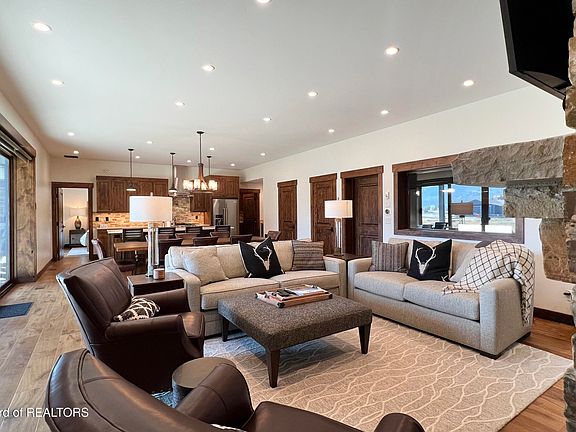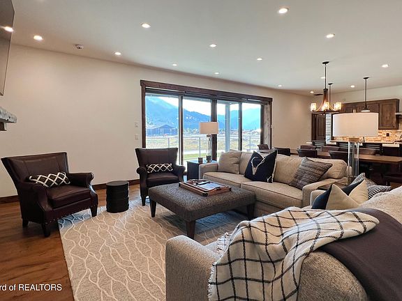 Discover this exceptional 3-bed, 3.5-bath condo hangar at Alpine Airpark 46U! Approximately 1,900 sq.ft. of beautifully finished living space, this fully furnished, move-in ready home has seen very little use, an ideal lock-and-leave retreat. Enjoy stunning mountain views from the spacious second-floor deck (105 sq.ft.) or relax on the lower deck by the fire pit. Double primary bedroom floorplan upstairs and large main level bedroom ensures a comfortable getaway for family and guests. A large parking ramp provides convenient access from the 5,850' runway via the jet-friendly Refuge taxiway. Located just 35 miles from Jackson Hole, this residential fly-in community offers an unparalleled lifestyle for those who love the great outdoors and aviation. Don't miss out on this unique opportuniy