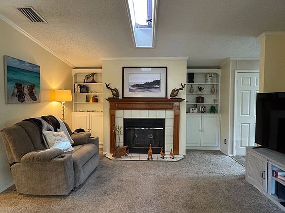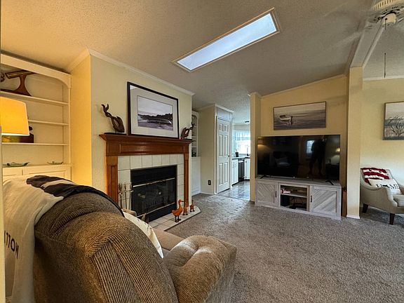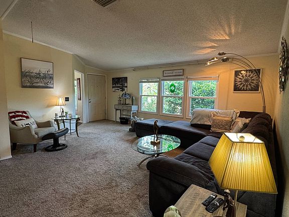This home features a beautiful natural lake in the backyard, double pane high-efficiency windows, pre-wiring for a generator, fireplace, new carpet in 2022, and an open floorplan you must see! Located in The Falls, a premier 55+ land-lease community, this home is even better in person, so PLEASE MAKE SURE TO WATCH THE WALKTHROUGH VIDEO on Realtor,com or Zillow. Contact agent directly by phone for showing. Lot rent is approximately $1620/month.