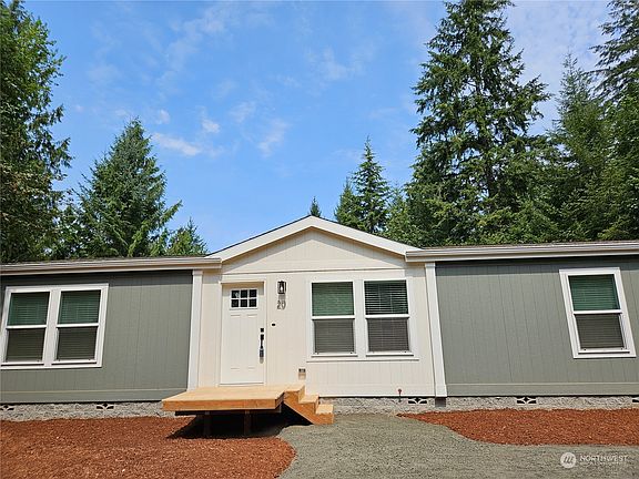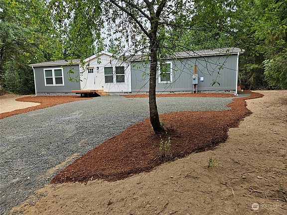 Cozy, serene, private & tranquil all describe this new manufactured home on shy 3 acres. Set back from the road, this home is positioned for maximum privacy. There are cleared areas just awaiting for your unique yard ideas. Inside you'll find the primary at one end of the home w/ walk in closet and large bathroom with double sinks, and it is separated from the other beds by the spacious living room, open kitchen & flex room. Ample storage. Home has a brand new 4 bed septic. Work from home? High speed fiber optic internet currently being installed on Olyview Rd! 20 Olyview is a wonderful home that feels like a getaway. Don't wait to make an appt to come out and view today!