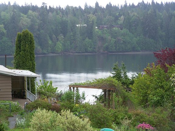 Amazing view from this corner lot home that features, 2 bd and 2 full bath and a wood burning stove to keep you warm Kitchen has eating bar and a dining room. Sit on the porch and watch the boats go by with this great view of the sound. Or go enjoy the extra room off the garage for a game room/shop it is connected to the 2 car garage. Large lot that is fully fenced with a garden area and fruit trees. In Rustelwood that features private beach and boat launch and clubhouse. Still can be financed.