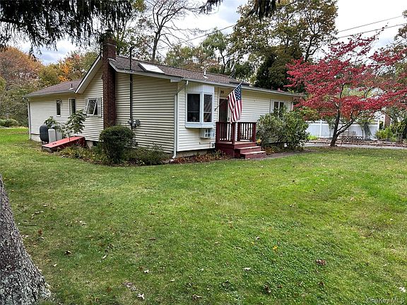 Charming Ranch located in Canaan Lake area on flat 1/2 acre plus with beautiful backyard and pond! This Home features Formal Liv Room with new Flooring, Kitchen, Dining room, Den with built in wall unit w/elec fp, Master Bdrm with Full bath, 2 additional bdrms & Main Full bath, 4 Skylights, Andersen windows throughout, Brand new heating system, Alarm system, IG Sprinklers Front.. & back, 1 Car Detached Garage with attached storage room. This home is very deceiving, a must see! Close to shopping, restaurants, downtown Patchogue..