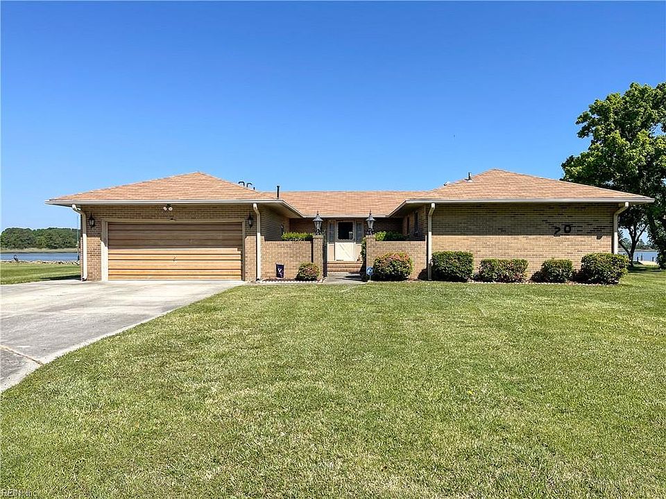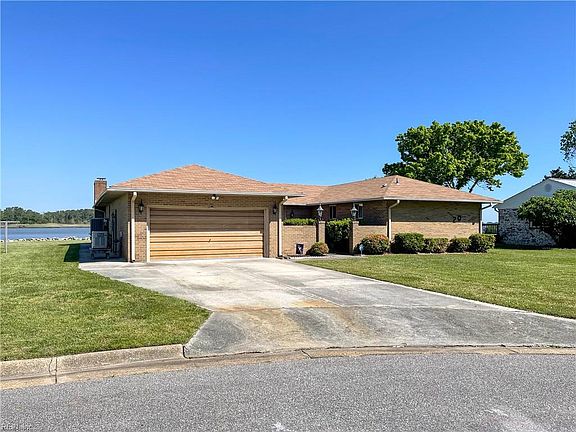 Fall in love with this waterfront home rancher with four bedrooms, two and a half bathrooms offering 2,320 square feet. This bright and airy space includes a formal living room, dining room, family room with a fireplace, sunroom overlooking the water, and a primary bedroom with incredible views. Other features include a two-car attached garage, patio off of the sunroom, and a spacious backyard leading to the water. Located near shopping, dining, and I-64.