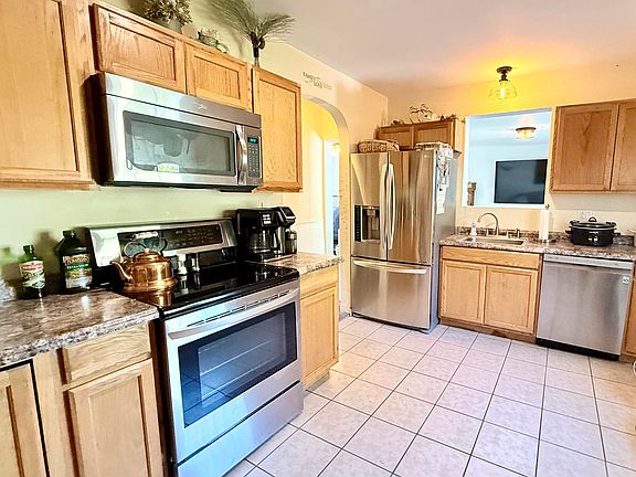 Charming 3-bedroom, 2-bath ranch home nestled on a spacious lot on a dead-end street. The kitchen features stainless steel appliances and generous cabinet space. Open-concept living and dining area with French doors leading out to a large deck overlooking the private backyard great for relaxing or entertaining. The primary bedroom includes a large primary bath with convenient in-room laundry. Outside, you'll find a unique tree house with electricity, ideal as a playhouse or creative retreat and a chicken coop. Additional features include a 1-car attached garage with overhead storage, and a full unfinished basement. Recent updates include a new electrical service and a new hot water heater. Just minutes from Plattsburgh and all its amenities.
