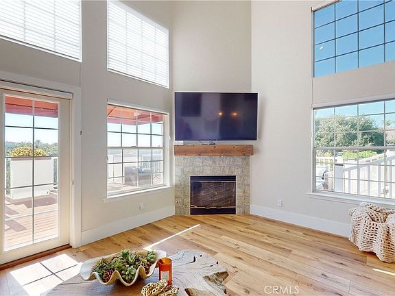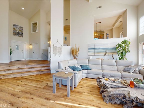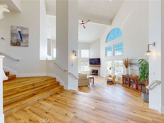 Embrace coastal luxury in this immaculate turnkey home located in the heart of Pismo Beach. Boasting cathedral ceilings, sweeping ocean views, and expansive outdoor spaces, this home offers the perfect balance of indoor-outdoor living. Recently updated with new flooring, baseboards, modern kitchen appliances, countertops, and fresh paint inside and out, this home is move-in ready. Situated on a peaceful cul-de-sac, it provides a serene retreat while remaining just minutes away from the beach and the conveniences of Pismo Beach. Upon entering, you'll be welcomed by a bright, open living room filled with natural light and stunning ocean views. Large windows, French doors leading to a spacious deck, and a gas fireplace create a warm and inviting ambiance. The main floor features an elegant primary suite, complete with its own fireplace, study nook, private deck access, and an updated bathroom with a walk-in closet, dual vanities, soaking tub, and separate shower, an ideal haven after a busy day. On the lower level, you'll find a private guest area with two additional bedrooms, a full bathroom, and access to a secluded deck. The upper level hosts another primary suite with its own ensuite bath, alongside a refined dining room adorned with chandeliers and access to a scenic deck. The kitchen, perfect for any home chef, is equipped with upgraded appliances, a built-in desk, a cozy breakfast nook with deck access, a laundry room, and a powder room.