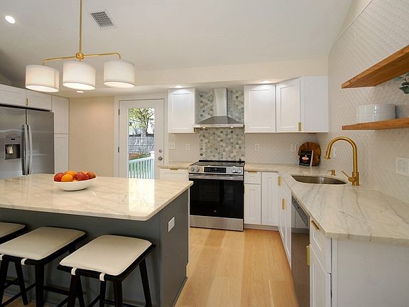 - Features: Vaulted Ceiling(s), Flooring - Hardwood, Flooring - Wood, Dining Area, Countertops - Stone/Granite/Solid, Kitchen Island, Deck - Exterior, Exterior Access, Open Floorplan, Recessed Lighting, Remodeled, Stainless Steel Appliances, Lighting - Pendant, Flooring - Engineered Hardwood