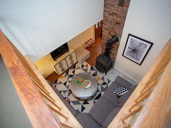 The apartment includes 2 bedrooms, an office space, living room, dining room and kitchen. A roof deck has views to the Monument, the Constitution, the North End and the beautiful Boston skyline.