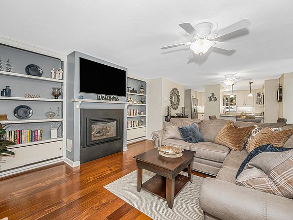 STUNNINGLY RENOVATED AND UPDATED DREAM CONDO AWAITS! Meticulous attention to detail and quality finishes have been lovingly curated in this stylish living space. This gem features a very rare private screened patio—perfect for relaxing or entertaining. Enter into the foyer with coat closet. To the left is the sunny kitchen w/crown molding, granite counters, tile back splash, ss appliances and granite "pass through" counter w/pendant lights open to the dining room and living room. The striking centerpiece of this room is the built in shelving and gas fire place. The primary bedrm offers a walk-in closet with shelving and the 2nd bedroom is nicely sized with a built in ironing board. The full bath sparkles with a walk-in shower and pocket door for more space. The laundry area, including washer & dryer, offers cabinets for storing your detergents & household supplies. **This end-unit beauty combines elegance with modern convenience. A truly turn-key home located in the back of the complex offering a serene neighborhood feel. 1 car detached garage and additional parking space. Newer circuit breaker panel, water heater, pex plumbing, air conditioner...among so much more. ** Underway are new roofs, units & garages newly painted. OFFERS DUE TUESDAY, OCT 7TH 2:00P.
