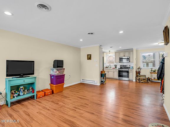 Beautiful remodeled open concept ranch in the desirable Crestwood 7 development. Everything has been completely renovated. Spacious Living room and dining room opening to the large kitchen with Corian countertops and stainless steel appliances. Laundry with washer/dryer and 1/2 bath. Good sized bedrooms with ample closet space. Crown molding and recessed lighting throughout as well. Sliders that open to the outdoor space. Air conditioner is one year old. Close to shopping and very nearby to the clubhouse. Do not overlook this one.