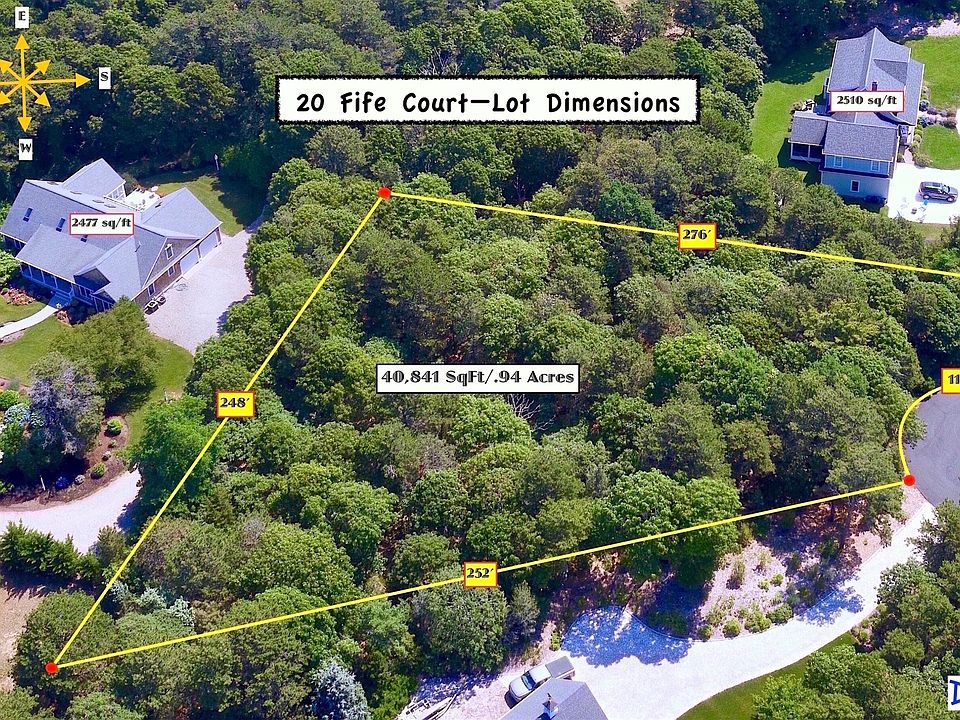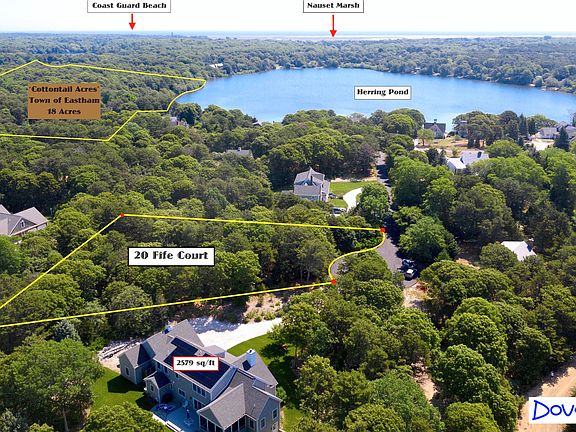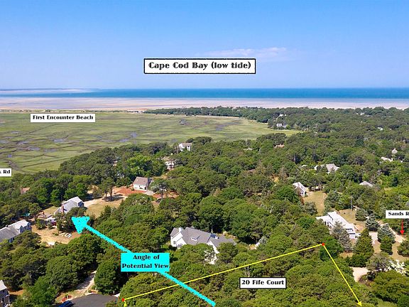 Fife Court is a unique enclave consisting of four 1-acre building lots and characterized by large (2500+ sq/ft) custom-designed homes. As the highest lot in the subdivision, 20 Fife Ct is distinguished by its potential for distant marsh/bay views from an elevated, 'roof-style' deck (see images). Enjoy the theater of ever-changing tides while scanning First Encounter Beach, The Marsh & Bee's River. The entire spectrum of the Outer Cape is visible as it bends toward Brewster, East Dennis & points beyond. Its south-facing orientation, large building envelope (sufficient for 4-bedrooms) & pine/oak wooded environment ensure your new home's privacy. Preliminary septic engineering has been completed. Natural gas & municipal water at street. All utilities located underground. Some of the area's best natural resources lay within easy reach: Herring Pond, 1/4 mile; 'Cottontail Acres', conservation land connecting a series of glacial ponds, 1/3 mile; Great Pond & CC Bike Trail, 3/4 mile. Not in Flood Zone. Building plans to be approved by the association. Make this the canvas upon which to realize the home of your dreams!