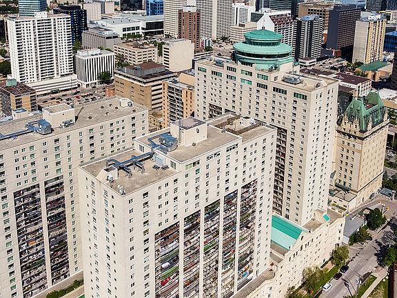 22-floor concrete apartment building located downtown in one of Winnipeg's most iconic buildings