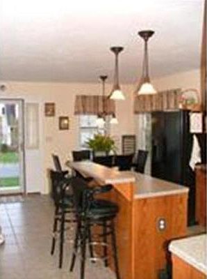 - Kit Dscrp: Flooring - Stone/Ceramic Tile, Recessed Lighting, Dining Area, Kitchen Island, Main Level, Lighting - Pendant