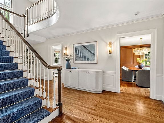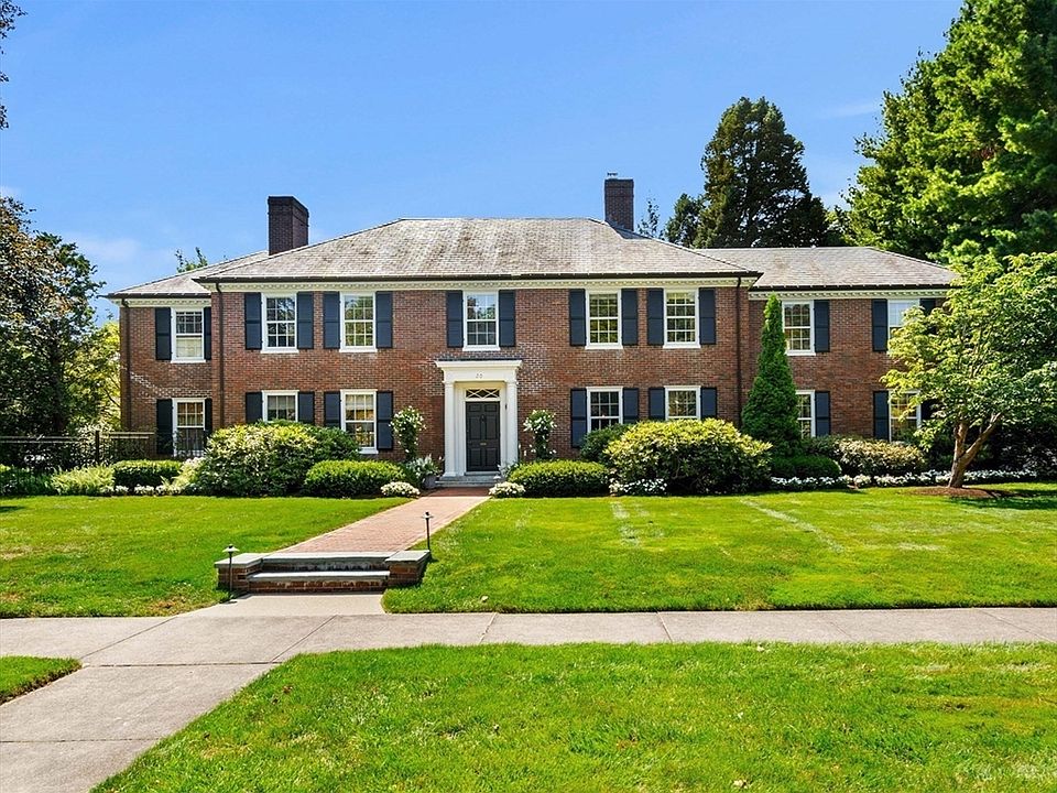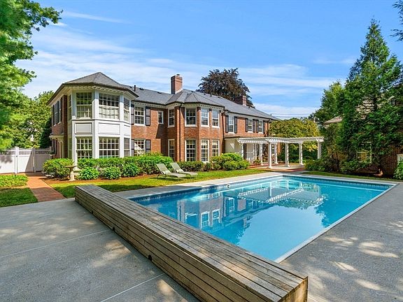 A rare opportunity to own one of The Flats’ most celebrated homes! This 1930s Colonial Revival w/ classic curb appeal & elegant proportions sits on over ½ acre of estate-like grounds featuring heated pool, patios, pergola & multiple areas for effortless entertaining. Inside, a grand foyer & sweeping staircase introduce gracious rooms w/ exquisite millwork & superb flow, equally suited for relaxed family living or refined gatherings. Highlights include eat-in chef’s kitchen w/ island & timeless finishes, butler’s pantry, stately dining rm, large living & family rms & private study. Upstairs offers a luxurious primary suite w/ marble bath & dressing rm, plus 4 add’l BRs, 3 en suite. Lower level features versatile family/game rms & wine cellar. Carriage house (2007) w/ 4 garage bays, cabana bath & studio/gym offers endless possibilities & ADU potential. Moments to town center, top rated schools & train, this iconic home is where elegance & livability come together in perfect balance.