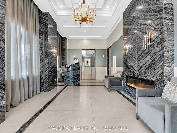 Welcome to modern luxury living in the heart of Thornhill! This stunning 2 bedroom 2 bathroom suite offers the perfect combination of style comfort and convenience in one of the most desirable condo communities. From the moment you walk in you will appreciate the open concept layout that seamlessly connects the living dining and kitchen areas. Soaring 9 ft ceilings and floor to ceiling windows flood the unit with natural light creating a bright airy and inviting atmosphere. The modern kitchen is equipped with full size stainless steel appliances sleek cabinetry ample counter space and a functional island making it the perfect spot for cooking and entertaining. Each bedroom is generously sized and filled with natural light. The primary suite boasts its own elegant ensuite bathroom and a spacious closet while a second full bathroom with modern finishes adds to the units functionality. Step outside onto the covered balcony ideally positioned at the quieter back side of the building which offers a peaceful spot to enjoy morning coffee or unwind in the evening. This unit also includes one underground parking space and a storage locker providing both convenience and security. Residents enjoy access to state of the art amenities including a fitness centre yoga studio indoor pool sauna steam room party lounge business centre and the reassurance of a 24 hour concierge and security service. The location is unbeatable just steps to transit top rated schools parks shopping centres groceries and dining and only minutes from Promenade Mall Winners HomeSense T&T Walmart and SmartCentres. Quick access to Highways 7 and 407 makes commuting simple and efficient whether you are heading downtown Toronto or exploring York Region. This residence offers the best of both worlds modern luxury living within a vibrant connected community. Elegant yet cozy bright yet serene this unit is ready to welcome its next homeowner.
