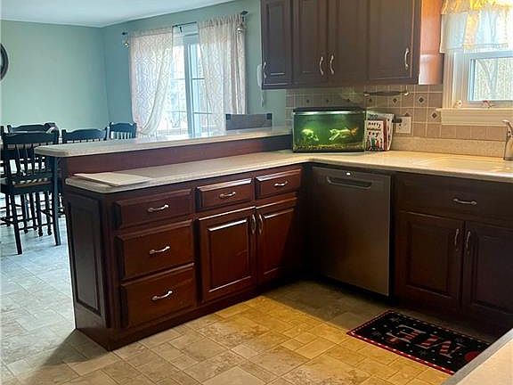 This lovely three bedroom, one and a half bathroom single-family home in desirable North Smithfield is the perfect place to call home. Enjoy the bright and warm atmosphere throughout this move in ready ranch with 2221 sq ft of living space .. Enter into the living room complete with wood burning fireplace and large picture window. The eat in kitchen features sliders to the back deck, updated stainless steal appliances with lots of cabinet storage and another exit out into your attached TWO car garage with more storage and attic access storage . Also on the main level are 3 bedrooms all with wood floors and a full bathroom with plenty of closet space. For additional living area, the newly updated brand new flooring , and newly painted finished basement has a large bright family room with full walkout sliders to outside patio as well as another office or bedroom, common ( kitchen) area, storage area with mechanicals room ,laundry room with half bath and another exit door to exterior of house. Perfect for in-law potential or a family needing extra space . Enjoy the peacefulness of the entertainers yard with an above ground round pool, two decks ,gas fire pit , patio area and mature landscaping, underground sprinklers , this home has all the features you need. close to all conveniences including shopping, dining, schools, interstate, and much more.
