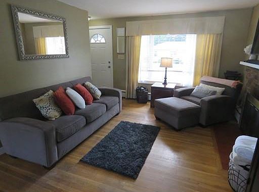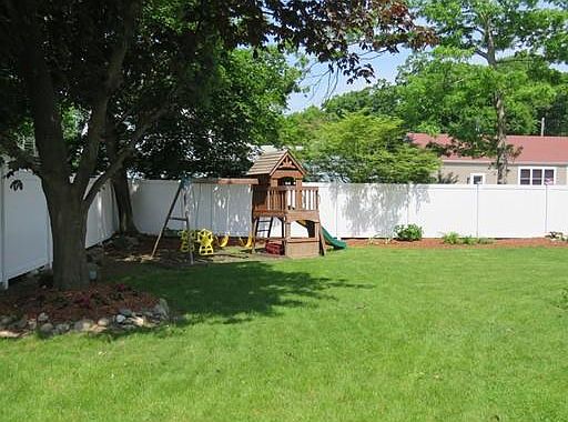 Sweet hip-roof Ranch in an even sweeter location! Kitchen is open to dining room and fireplaced living room. Hardwood floors on main level except kitchen, which is tile. Finished basement with recessed lighting provides the perfect place for your big-screen TV or play room! Brand-new oversized deck off the kitchen looks over the private, fenced yard. This low-traffic, residential tree-lined street enjoys easy access to shopping and major routes. Town water & sewer, replacement windows, and newer Buderus boiler. Showings can commence Friday, June 7th with first open house Saturday June 8, 2-2. Showings are fine on Sunday, but no open house planned.