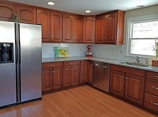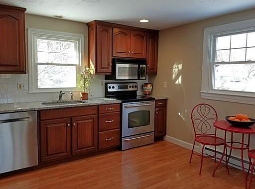Showings begin at the open house this Sunday, March 10th from 12:00 - 2:00. Beautiful and spacious colonial on dead end road! Much roomier than it appears! Updated kitchen boasting cherry cabinets, granite countertops, subway tile and stainless steel appliances. Dining room has slider that leads to oversized deck and flat back yard. Light filled 26' x 26' great room with vaulted ceilings, gas fireplace, french doors and skylight. Brand new full baths with new vanities, tiled flooring and subway tile. Bedroom on 1st floor and bedroom on 2nd floor have walk in closets. 2 car garage with 10' wide garage doors. Solar panels are fully owned and transferable to save on electric. In-law potential. Walking paths behind property connect to fishing and boating area on Dorothy Pond. Great Mass Pike access!
