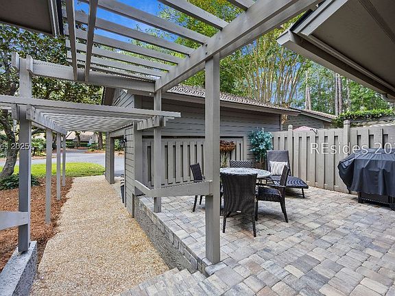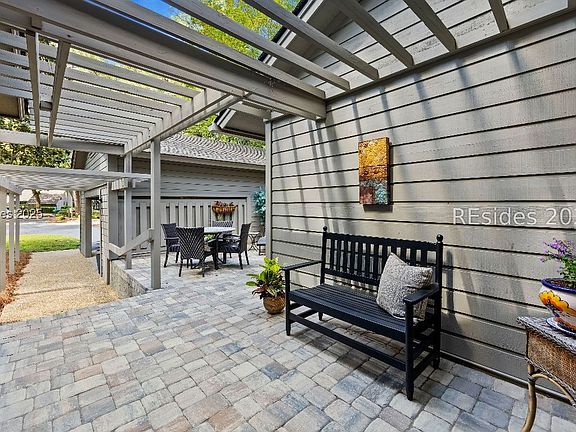 2 Bdr/2 Ba all on one floor in the highly coveted Residents Club. with a 1 car carport and driveway with a large, secured storage closet. It was renovated in 2024 and move in ready! New Paint. New Flooring, New stainless-steel appliances and tile backsplash, 2 New Skylights in Breakfast area, no fogged Windows in Living Room. New Roof is 2020. New Lighting, New Sink & Toilet in Hallway Bathroom. Smooth ceilings, New solid interior doors and Sunroom exterior door. Back deck and stairs have been improved. Front Paver Courtyard with a private wall adds to your own outdoor living area and a very welcoming front entrance. Gutters were added in back in 2024. No short-term rentals. There is a Private Residents Club Pool and close to the Sea Pines Country Club if you wish to join. Back deck has golf views of the 10th hole. Residents Club rarely come on the market...don't miss this one. Close proximity to Sea Pines front security gate. An easy drive to your new home and all the truly amazing amenities and beach access that Sea Pines has to offer.
