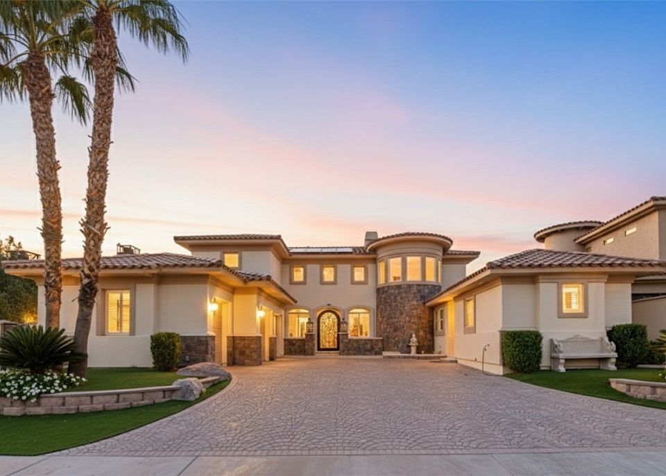 Experience resort-style living in this semi-custom 5 bedroom, 5.5 bathroom home on the Biarritz Golf Course in guard-gated South Shore at Lake Las Vegas. This luxury retreat offers a grand entry, soaring ceilings, custom iron staircase, and a spacious living room with floor-to-ceiling fireplace. The gourmet kitchen boasts a large island, custom cabinets, and stainless steel appliances. Downstairs master suite with jetted tub, walk-in shower, dual vanities, and walk-in closet. Includes 500+ SqFt casita, an entertaining upscale bar area, and a 5th bedroom that can serve as an additional living room or media room with built in surround sound. Enjoy a sparkling pool/spa, built-in BBQ, covered patio, and direct golf access. Auto EV home charger, water filtration system, and energy saving solar panels. Breathtaking lake, mountain & golf views. The community offers world-class amenities including golf, fitness centers, water sports, dining, and more!