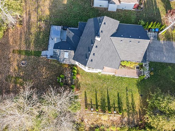 Frontage is 56.70 ft plus the curve (approximately 80 feet). Open the door to a bright sun-filled, elegant custom-built and exclusive designed, year round home. Make it your vacation home with your family or to meet up with friends. 5 Bedrooms, 3 Washrooms 3121 sq.ft of Living Space. Grand space is evident as soon as you walk in. Open and spacious living room with vaulted ceiling and large windows with views of the landscape and sky. Room to accommodate your guests for entertaining in style or just spend your summer days in close proximity to beautiful Woodland Beach. After a day at the beach, return to enjoy time on your back composite deck with built-in gazebo, surrounded by nature. The large yard provides plenty of space for landscaping, perennials and all of your gardening skills. Lower level provides extra room for guests or family or in-law suite. Oversized double garage with shelving at the back provides space for summer toys. Updates include: New shingles with Skylight. New Composite Deck with Gazebo. Make Georgian Bay part of each day you spend here! One of a Kind Architectural Gem. Must See! Property Lot Size: 79.99 ft x 141.90 ft x 6.71 ft x 6.71 ft x 6.71 ft x 6.71 ft x 6.71 ft x 56.70 ft x 165.10 ft.
