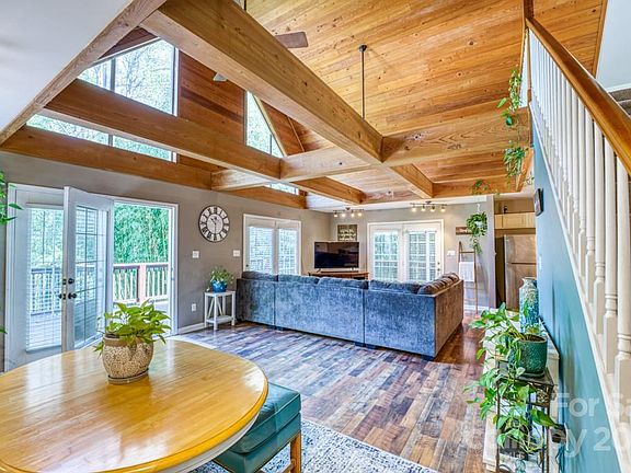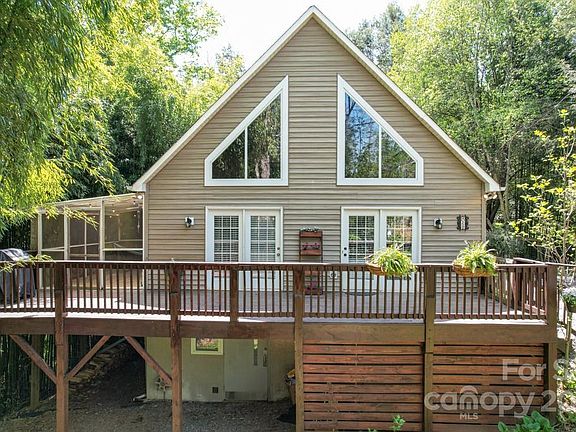 PRICED BELOW RECENT APPRAISAL! Check out this charming 3 bed/3 bath home in Black Mountain! This lovely home sits on over an acre of land, complete with a fenced-in backyard that offers plenty of privacy. You'll be delighted to know that the soaring tongue and groove ceilings with picture windows and beautiful exposed beams bring an abundance of natural light into the open living/dining/kitchen area. The open floor plan seamlessly spills onto a large front deck & screened-in side porch, making this house perfect for indoor/outdoor entertaining. This home also features two en-suite primaries and a large unfin. basement with plumbing, offering ample room to grow! With only 5 minutes to the heart of Black Mountain & 20 min. to downtown Asheville, you'll have the best of both worlds - proximity and privacy. Conveniently located near restaurants, breweries, shops, and two beautiful parks, all in Black Mountain!