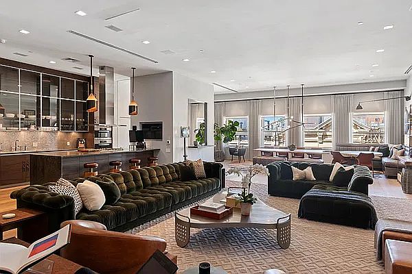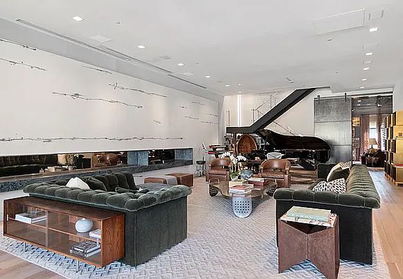 Stunning & sophisticated condominium loft in SoHo featuring incredible outdoor terrace space with unobstructed 360' views including every landmark in the city from Hudson Yards, to the Freedom Tower, to the Empire State Building. Located within the prestigious Cast Iron District, this 3 bedroom, 3.5 bathroom penthouse includes 4,300+ sq ft interior and the dramatic 2,200+ sq ft exterior. Enter into your semi private elevator landing and into the expansive first level with original arched windows and soaring ceilings. This living area is larger than most apartments and is centered on the Crestron controlled gas fireplace and an unbroken gallery-length wall of over 57'. The rich beautiful open kitchen is a chef's dream with an abundance of cabinet, storage and counter space, perfect for prepping for major entertaining or more casual informal gatherings. To the far end of the extensive living space is the climatic floating stair case which takes you to the second and third levels. Perfectly designed with a sky light to accentuate the breathtaking structure and allow for warmth and light. Just beyond the staircase separated by sliding door of Argosy steel and glass lies the rich library/den/media room featuring custom millwork, wall paneling a gas fireplace with onyx colored Travertine hearth, and dry bar with 15" Sub-Zero wine cooler. Also in this area is the first level bedroom suite with its own large bathroom and beautiful built in wood paneling and closet space. This level features a dramatic powder room clad completely in rich dark brown marble. The second level has two bedrooms and two large terraces. The grand primary bedroom suite is bathed in warm light and unlike any other including 2 oversized custom walk in closets and a beautiful spa bathroom. A wall of sliding glass doors lead to the private oversized south facing terrace. The additional bedroom is equally large with an ensuite bathroom and enjoys fantastic light and access to the north facing terrace. Up to the third level is a wet bar with access to the largest of the three terraces perfect for incredible entertaining and the most sweeping city views.