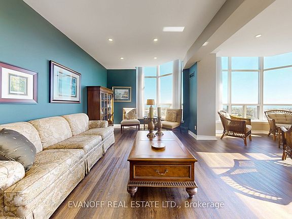 FIRST TIME EVER ON THE MARKET! Experience luxury Penthouse living in this stunning 1,900 sq ft ONE-LEVEL suite, offering unobstructed panoramic views of Lake Ontario from every window. Flooded with natural light, the open-concept layout creates an airy, spacious atmosphere that's perfect for both relaxing and entertaining! Beautifully updated throughout, this Executive Residence features 9-foot smooth ceilings with elegant LED pot lights, brand new luxury vinyl flooring, and motorized window blinds for added comfort and convenience. The renovated Kitchen is a chefs dream, complete with granite countertops and premium stainless steel appliances! The expansive Primary suite includes a sun-filled Solarium, a spa-inspired 6-piece ensuite bathroom, and a generous walk-in closet. For added practicality, there's an ensuite storage room, along with an owned locker and two side-by-side parking spots! This is a rare opportunity to own a lakefront Penthouse that blends sophisticated design with breathtaking views! Don't miss this chance to make it yours! Experience a carefree resort-like lifestyle at the Gates! The fabulous Rec Centre features an indoor salt-water pool, Billiards, Squash, Pickleball, Tennis, indoor Golf Practice & outdoor putting green & more! There's an active Social calendar offering numerous clubs, classes & activities! Outdoor BBQ's & common patio space are great for mingling with your friends & neighbours! Great location with TTC at the door, and the GO train a few steps away for a quick ride downtown! NOTE: 2nd Bedroom is currently open & used as living space. (can easily be restored - ask L/A)
