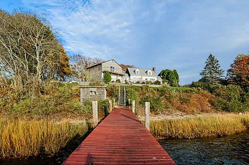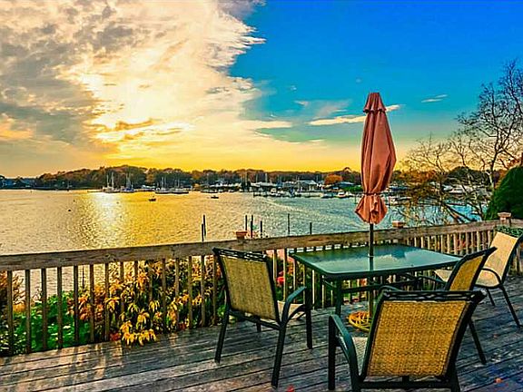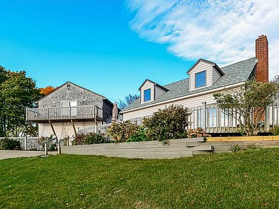 HOME IS LOCATED HIGH ON A PRIVATE PENINSULA COMPLETE WITH A MOORING AND DEEP WATER DOCK. NEW 5 BEDROOM SEPTIC SYSTEM. LARGE PARTIALLY FINISHED MASTER SUITE OR POSSIBLE INLAW APARTMENT ABOVE THE GARAGE. CHARMING BEACH ROCK FIREPLACE. BOATERS HEAVEN