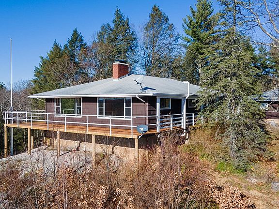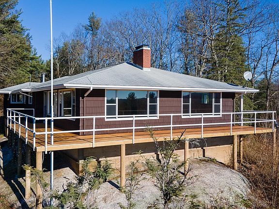 This Mid Century Modern ranch is the one you’ve been waiting for! Located on a private 11.5 acres, with amazing views and wrap around deck. Freshly painted throughout and offering single floor living, this 4 bedroom/2 bathroom home has a great layout, along with lots of natural light, natural woodwork and hardwood floors throughout. Entertain guests in the open concept dining and living room featuring two walls of windows and a floor to ceiling brick fireplace, along with built in bookshelves. The vintage kitchen has a terrific layout, with lots of cabinets and drawers, along with a stainless steel dishwasher. Storage space galore with the pulldown attic and cedar closet. All four bedrooms are nice sized, along with two vintage bathrooms, one with stand up shower and the other with a tub. Centrally located between Manchester, Concord and Portsmouth, and home of the legendary Deerfield Fair, this lot is in current use for lower taxes. Four car detached garage offers space for your cars and toys. Low maintenance yard also has a fenced in garden space. Must see to fully appreciate, come take a look for yourself and imagine yourself home!
