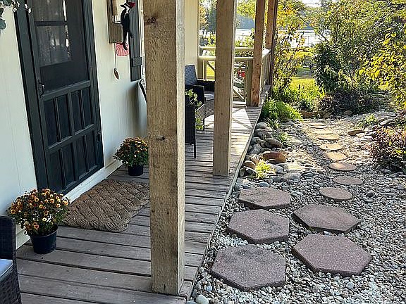 This two bedroom home has the perfect porch with views of the canal and Lake. Every inch of this home is purposefully placed for maximum use and enjoyment of the interior space, neighborhood and lake. This beautiful home has a cottage feel with shiplap interiors, water view, and rock garden path that start from the parking area and wraps around the home to the adorable storage shed on the canal side of the property. The open floor plan creates an open, cozy vibe - especially with the views of the water through the large living room picture window. Sit on your dock and enjoy the sunset, or enjoy a boat ride on the lake - your personal boat dock with hoist is included!