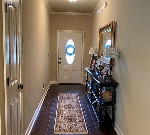 Beautiful like new Brick home with lots of extras, Security System, Sprinkler System, Vinyl Privacy fenced back yard overlooking pond, granite thruout, stainless appliances, upstairs bonus bedroom has full bath and walk in closet, Master suite downstairs with Large garden tub, separate glass door shower, new Electric bronze plates, Moen Faucets, Hardwood floors, new deck , Hardwood floors except in baths. Rehobeth School District. So much to see. . Refrigerater stays also. Has new deck.