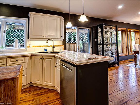 This Magnificent Home Combines The Perfect Blend Of Traditional Charm With The Functionality Of The Comfort Interior. Truly Special Family Home In A Very Friendly And Private Community In The Heart Of Barrie. Open Concept Layout With Sunken Large Living Room And Wood Fireplace. Lovely Warm Woods & Hardwood Floors Through Out. The Kitchen Feel "Country Gourmet". Gazebo Area, Breathtaking South Lake View. Walking Distance To Lakefront, Parks & Downtown.