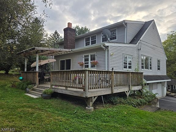 Spacious 5-bedroom home on a 0.36-acre lot in Vernon Township offering a flexible layout with 2 first-floor bedrooms and a full bath, plus 3 additional bedrooms and another full bath upstairs. The main level features a two-story living room with a cathedral ceiling, hardwood floors, and a bay window providing natural light. An eat-in kitchen with gas cooking, tile flooring, and a pass-through to the family room add convenience and function. The family room includes a large stone wood-burning fireplace (not currently in use), carpeted flooring, and access to the backyard through French doors. Outside, enjoy a southwest-facing elevated deck with a pergola overlooking the backyard. The home needs some TLC and offers an opportunity to update and personalize. Additional features include natural gas heat and hot water, a 2-car garage with basement space behind it, vinyl siding, and mature landscaping. Located close to Vernon amenities, under a mile to Route 23, approximately 4.2 miles to both ShopRite and ACME, and approximately 12 miles to High Point State Park, with everyday shopping, dining, and outdoor recreation all within easy reach. This home comes with a 1 year home warranty!