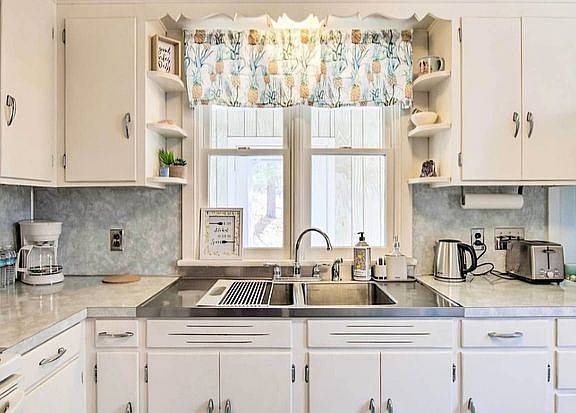 Workshop areaFarmhouse-style double sinkHuge third bedroomOriginal hardwood floorsExposed beamsLaundry hookupsBuilt-in closets