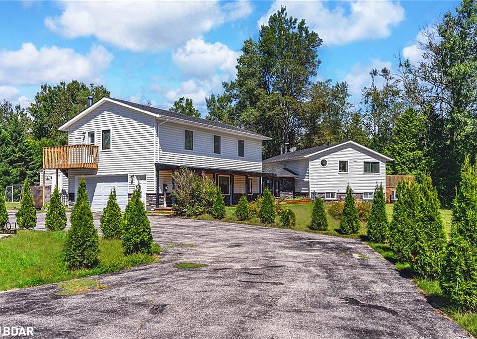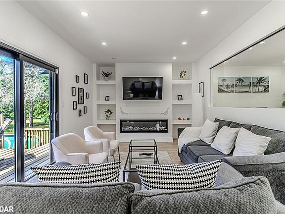 ELEGANT ESTATE ON 1.31 ACRES WITH PREMIUM FINISHES, EXCEPTIONAL OUTDOOR SPACE & MULTI-GEN POTENTIAL! Tucked away on a private estate lot just minutes to Barrie and Hwy 400, this jaw-dropping executive residence offers nearly 3,100 finished sq ft of completely reimagined designer living with showhome-worthy finishes and an exceptional lifestyle. A striking double-tower facade makes a bold first impression before stepping into sun-drenched interiors styled with oversized black-framed windows, pot lights, easy-care flooring and a neutral colour palette. The dream quartz kitchen is as functional as it is beautiful, featuring a waterfall island, stainless steel appliances including a gas stove, pot filler, modern hardware, open shelving and sleek pendant lighting, flowing into a sophisticated dining room with a walkout alongside a stunning living room with a linear fireplace, built-ins and a walkout. Six bedrooms and five bathrooms cater to large or multi-generational family living, highlighted by a magazine-worthy primary retreat with a five-piece ensuite with vessel sinks, walk-in closet, wood stove and private walkout. The finished lower level showcases an expansive recreation area ready for a pool table, a wood-burning fireplace for cozy ambience and a showstopping custom wine room that will thrill collectors and entertainers. Everyday living is elevated with a mudroom showcasing cabinetry and bench seating, a main floor laundry room and a dedicated pet wash station. Outside, enjoy resort-style entertaining with a massive deck, covered porch, hot tub, above-ground pool and sprawling lawn surrounded by mature trees for ultimate privacy. Whether it is sipping vintages in your incredible wine room or unwinding in the hot tub after a summer swim, this #HomeToStay captures the true joy of living well.