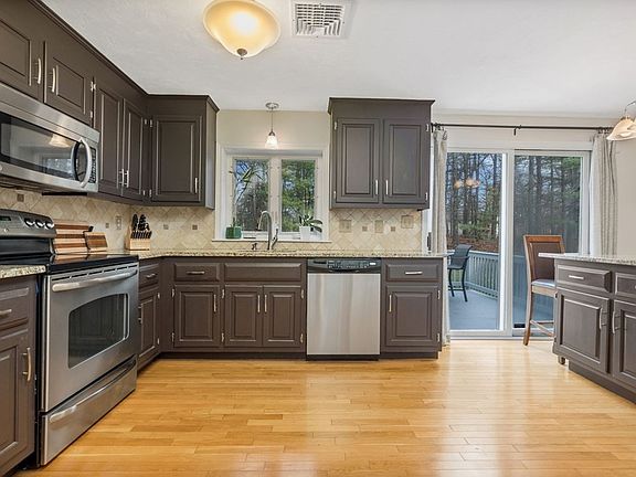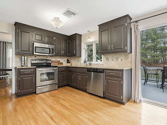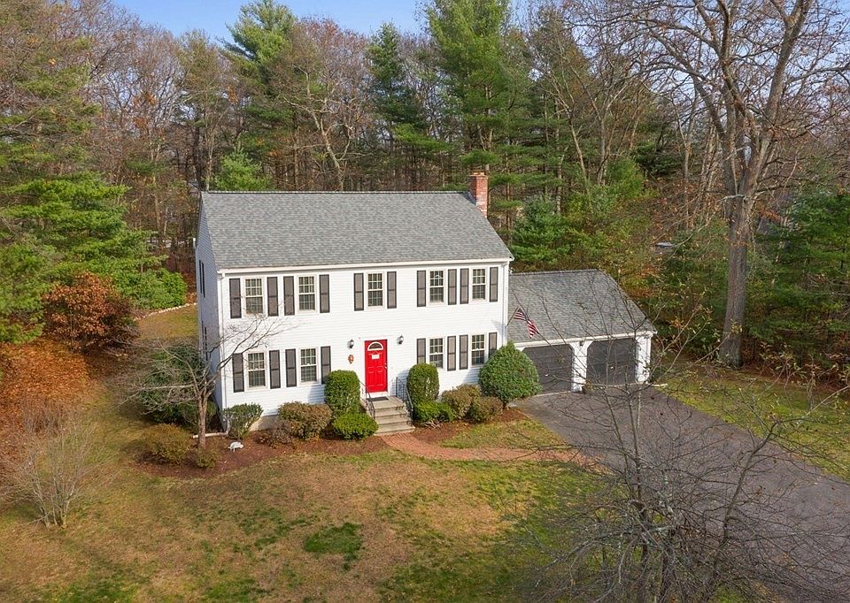 Welcome Home! You will fall in love as you enter this sun filled home in a sought-after neighborhood. Beautifully maintained and updated, checking all your boxes with open floor plan, gleaming hardwood floors, central A/C, two car garage. Oversized living room is open to dining room with wainscoting. Spacious family room has a cozy fireplace and is open to the kitchen- stainless appliances, granite countertops and center island with slider letting the outside in. Half bath includes washer dryer. Second floor offers large master suite, hardwood floors, 2 closets and picture-perfect full bath & walk-in glass shower. 3 additional good size bedrooms and 2nd full bath. Large deck overlooking a private acre, beautifully landscaped, patio and custom fire pit. Huge basement just waiting to be finished. New Roof & gutters 2020. Minutes to Commuter Rail, Outlets, and Patriot Place. You won't want to miss this one.