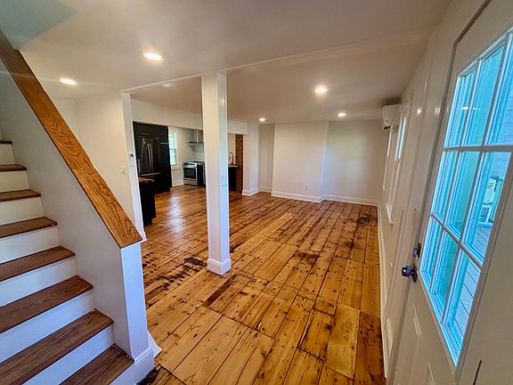 Spacious, newly renovated two bedroom apartment with front deck in the heart of the Rondout. This place has tons of charm just two blocks over from the shops, restaurants and galleries of Kingston's historic waterfront. This is a unique property! Built in 1849 and renovated in 2025, this is a spacious, duplex apartment that features (mostly) new appliances and fixtures amid lots of historic details. All-electric, with energy-efficient mini-splits and a gourmet induction range. Make this your new home in Kingston's most desirable neighborhood! Owner pays for water, tenant is responsible for electric and internet.