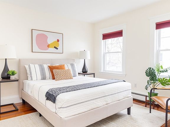 A sunny, spacious condo in a lovely neighborhood, 20 Hosmer Street #1 is an ideal spot to come home to. Part of a two-unit building, it has two levels of living space. The main floor features a lovely, classic living room with fireplace and built-in glass-fronted cabinets. The dining room connects to a nicely renovated and spacious kitchen with a Thermador range, and Thermador dishwasher; two well-proportioned bedrooms flank a full bath that was redone in 2020. The downstairs level was renovated in 2022 and holds a recreation/guest room with a full-size Murphy wall bed, laundry area, a full bath, and an exterior door to the shared back yard. A final highlight on this level: an attached garage that opens to the unit, plus one additional parking space outside the garage.